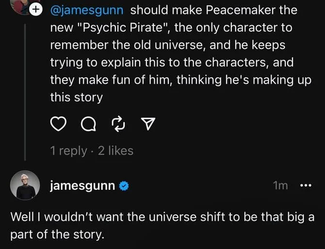 Gunn replied to a fan's idea that season 1 be changed to make it seem like a Psycho-Pirate-style hallucination,